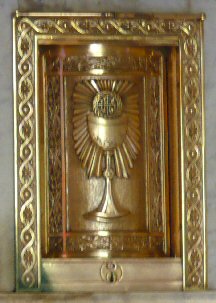 The Priest Approaches and Kisses the Altar:  The altar is a symbol of Christ.  In it are cut five crosses to recall the five wounds of Christ.  The altar also represents the Church and has embedded in it the relics of her saints.  The priest comes to the altar to celebrate the Sacrifice in the Church's name.  Because of the glory surrounding the altar upon which the divine Sacrifice will be made, the kiss of the priest unites the Church to Christ, its Redeemer.