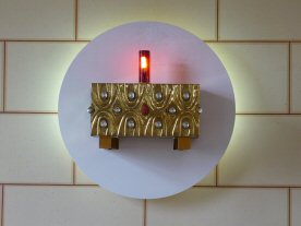 The Priest Approaches and Kisses the Altar: The altar is a symbol of Christ. In it are cut five crosses to recall the five wounds of Christ. The altar also represents the Church and has embedded in it the relics of her saints. The priest comes to the altar to celebrate the Sacrifice in the Church's name. Because of the glory surrounding the altar upon which the divine Sacrifice will be made, the kiss of the priest unites the Church to Christ, its Redeemer.