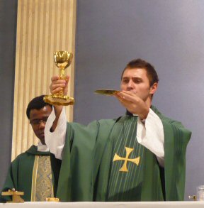 Priest: May this mingling of the Body and Blood of our Lord Jesus Christ bring eternal life to us who receive it.