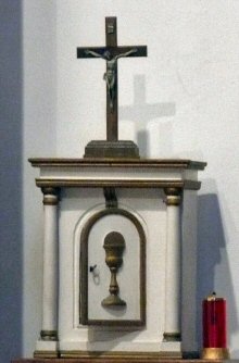 The Priest Approaches and Kisses the Altar: The altar is a symbol of Christ. In it are cut five crosses to recall the five wounds of Christ. The altar also represents the Church and has embedded in it the relics of her saints. The priest comes to the altar to celebrate the Sacrifice in the Church's name. Because of the glory surrounding the altar upon which the divine Sacrifice will be made, the kiss of the priest unites the Church to Christ, its Redeemer.