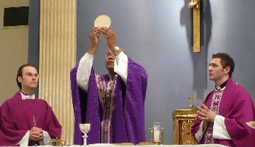 Priest and All: Lord, I am not worthy that you should enter under my roof, but only say the world and my soul shall be healed.