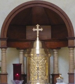 The Priest Approaches and Kisses the Altar: The altar is a symbol of Christ. In it are cut five crosses to recall the five wounds of Christ. The altar also represents the Church and has embedded in it the relics of her saints. The priest comes to the altar to celebrate the Sacrifice in the Church's name. Because of the glory surrounding the altar upon which the divine Sacrifice will be made, the kiss of the priest unites the Church to Christ, its Redeemer.