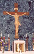 The Priest Approaches and Kisses the Altar: The altar is a symbol of Christ. In it are cut five crosses to recall the five wounds of Christ. The altar also represents the Church and has embedded in it the relics of her saints. The priest comes to the altar to celebrate the Sacrifice in the Church's name. Because of the glory surrounding the altar upon which the divine Sacrifice will be made, the kiss of the priest unites the Church to Christ, its Redeemer.