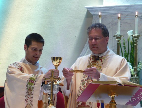 Priestly Preparation:    Lord Jesus Christ, Son of the living God, who, by the will of the Father and the work of the Holy Spirit, through your Death gave life to the world, free me by this, your most holy Body and Blood, from all my sins and from every evil; keep me always faithful to your commandments, and never let me be parted from you.