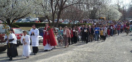 Priest: Dear brethren, since the beginning of Lent until now we have prepared our hearts by penance and charitable works. Today we gather together to herald with the whole Church the beginning of the celebration of our Lord's Paschal Mystery, that is to say, of his Passion and Resurrection. For it was to accomplish this mystery that he entered his own city of Jerusalem. Therefore, with all faith and devotion, let us commemorate the Lord's entry into the city for our salvation, following in his footsteps, so that, being made by his grace partakers of the Cross, we may have a share also in his Resurrection and in his life.