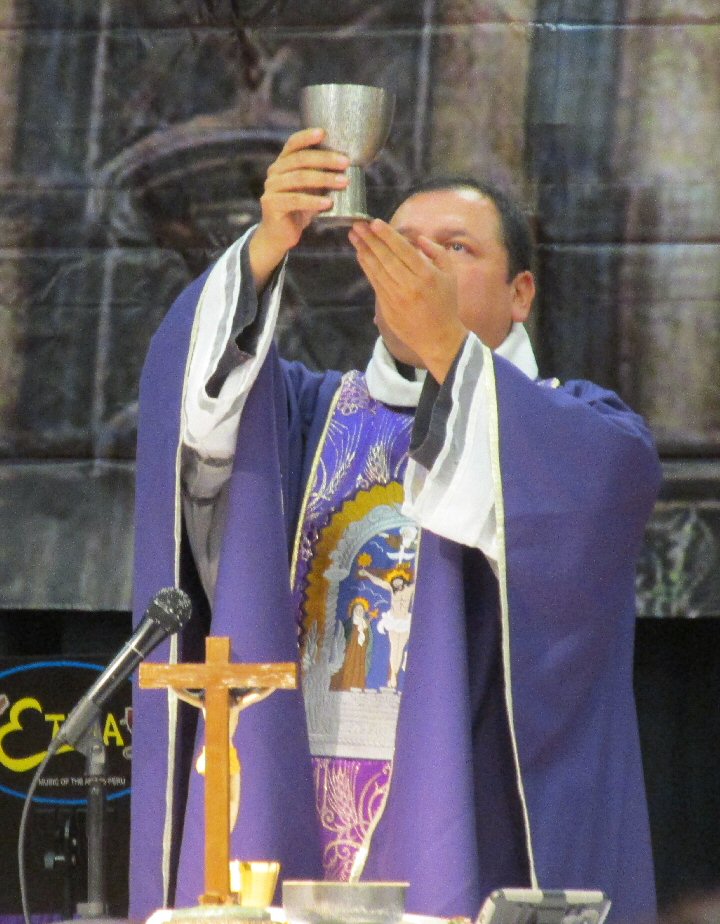 Priest: May this mingling of the Body and Blood of our Lord Jesus Christ bring eternal life to us who receive it.