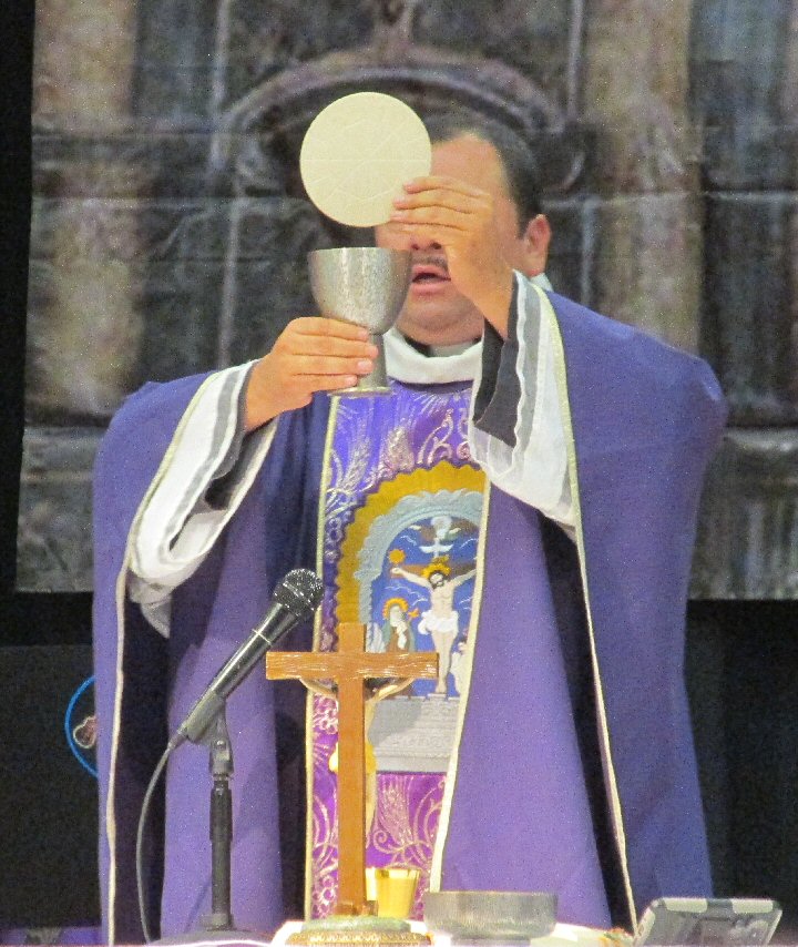 Priest and All: Lord, I am not worthy that you should enter under my roof, but only say the world and my soul shall be healed.