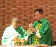 Priest and All: Lord, I am not worthy that you should enter under my roof, but only say the world and my soul shall be healed.