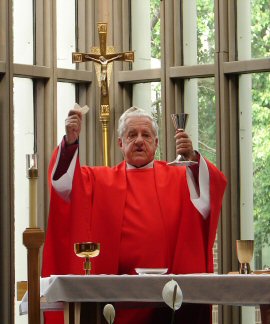 Red priestly vestments symbolize a life of sacrifice